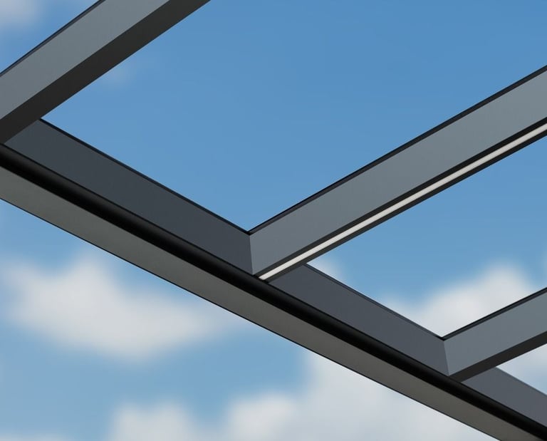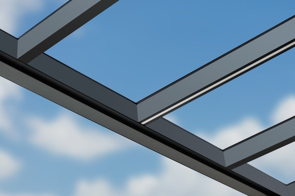 Verleihen Sie Ihrer Pergola mit Glasdach einen luxuriösen Charakter mit eleganter LED-Beleuchtung, die direkt in die Dachsparren integriert ist.