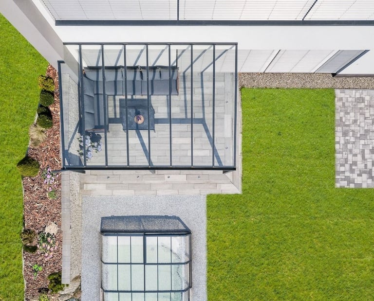 Darüber hinaus lässt sich die Pergola als Basis für einen funktionalen und ästhetisch ansprechenden Wintergarten nutzen. Ergänzen Sie sie einfach um feste oder verschiebbare Seitenverglasungen.