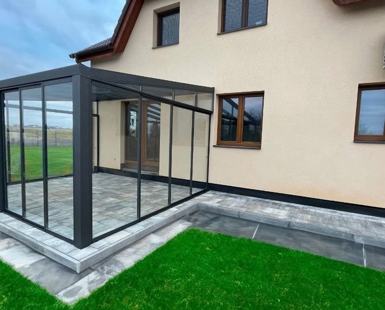 Möchten Sie Ihren Wohnraum am Haus erweitern und aufwerten? SkyGarden bietet die ideale Lösung – eine verglaste Terrasse inklusive Seitenwänden, die Komfort, Sicherheit und ganzjährige Nutzbarkeit vereint.