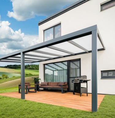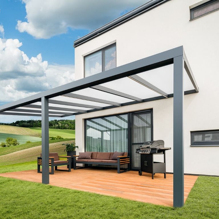 Robuste und langlebige Überdachung mit hochwertigen Polycarbonat-Platten. Gute Wärmedämmung und zuverlässige Wetterbeständigkeit.