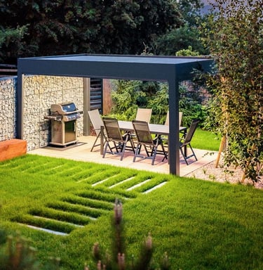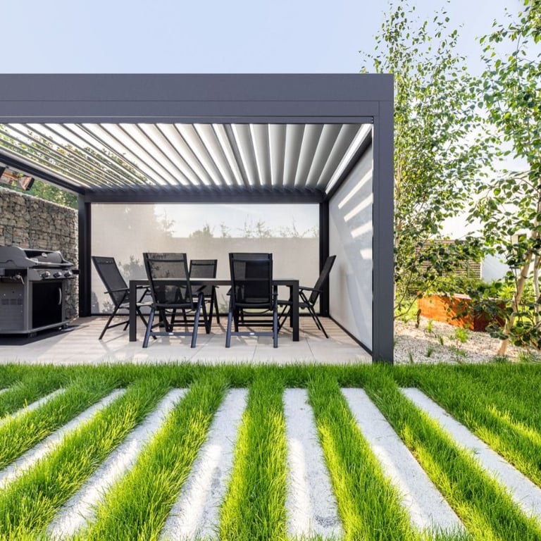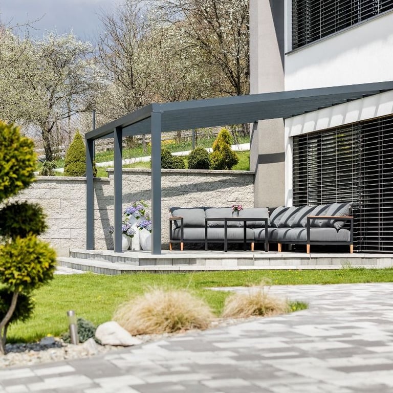 Intelligente Lösung mit verstellbaren Lamellen für optimale Belüftung, effektiven Sonnenschutz und zuverlässigen Wetterschutz. Ideal für die ganzjährige Nutzung im Außenbereich.