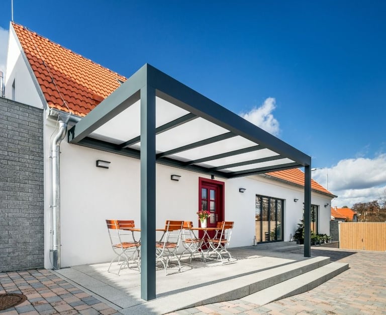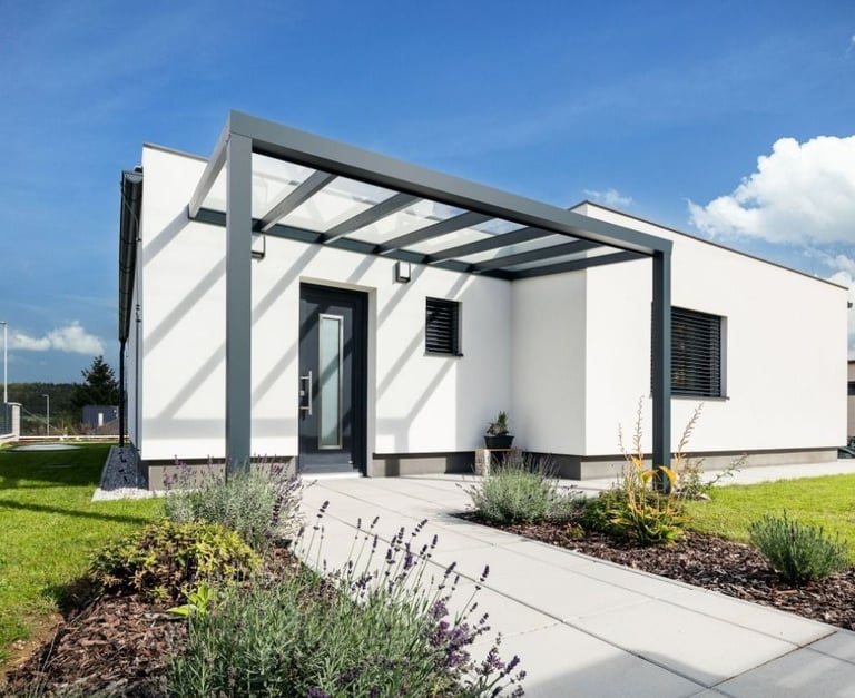 Robuste und langlebige Überdachung mit hochwertigen Polycarbonat-Platten. Gute Wärmedämmung und zuverlässige Wetterbeständigkeit.