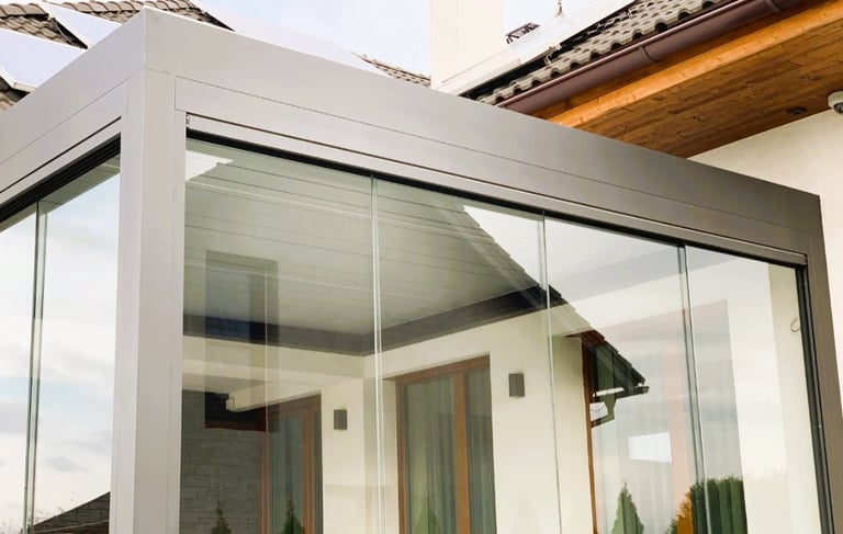 • Feste Verglasung und verschiebbare Rahmensysteme zur vollständigen Schließung des Raumes