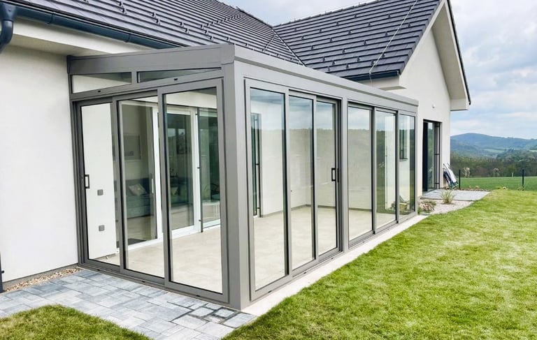 Möchten Sie Ihren Wohnraum am Haus erweitern und aufwerten? SkyGarden bietet die ideale Lösung – eine verglaste Terrasse inklusive Seitenwänden, die Komfort, Sicherheit und ganzjährige Nutzbarkeit vereint.
